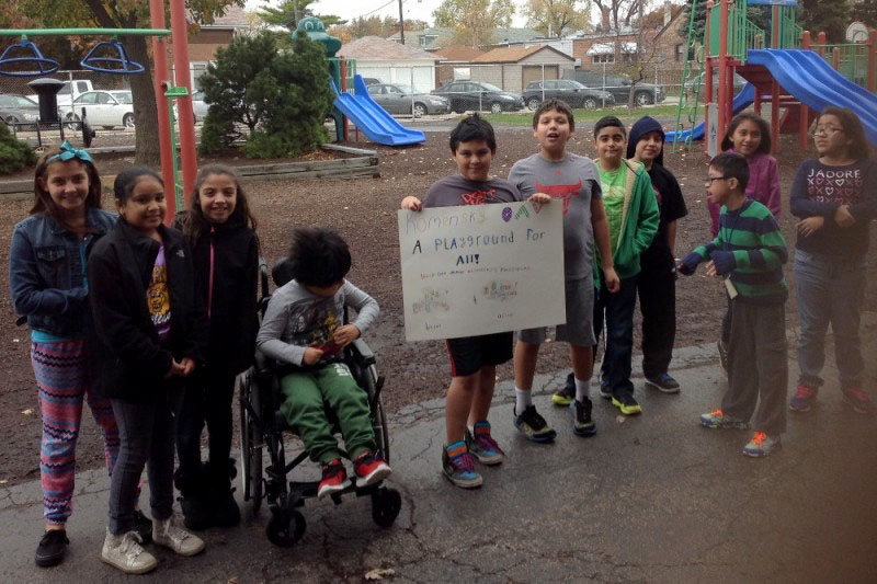 On April 13th, 2017, students, parents, and community members of Komensky School will have an opportunity to plan a final playground design. Then, on Saturday, June 10th, 2017 in ONE day, they will build a great new place for kids to play.