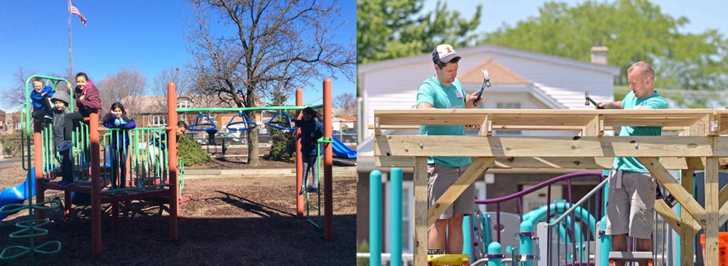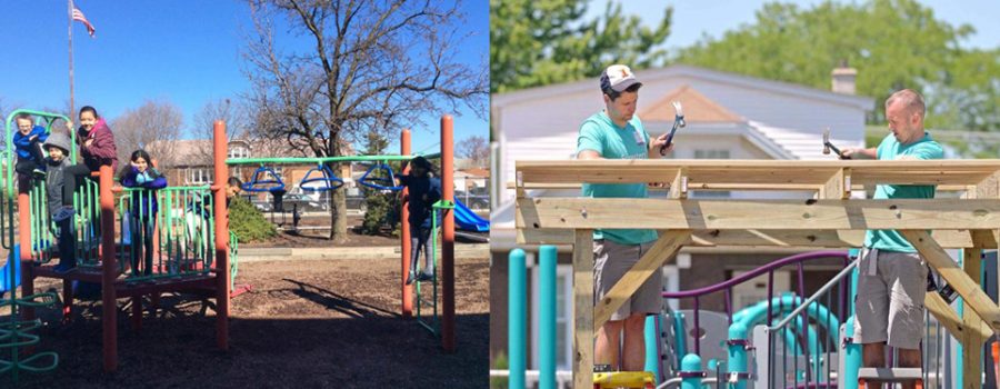 June 12, 2017 is a day students and teachers at Komensky Elementary School in Berwyn won’t soon forget, the culmination of two years of hard work that began when 5th graders in Komensky’s Our American Voice program decided that their school needed a new playground, because their peers in the school’s Developmental Learning Program and those in wheelchairs couldn’t participate in the one they had.