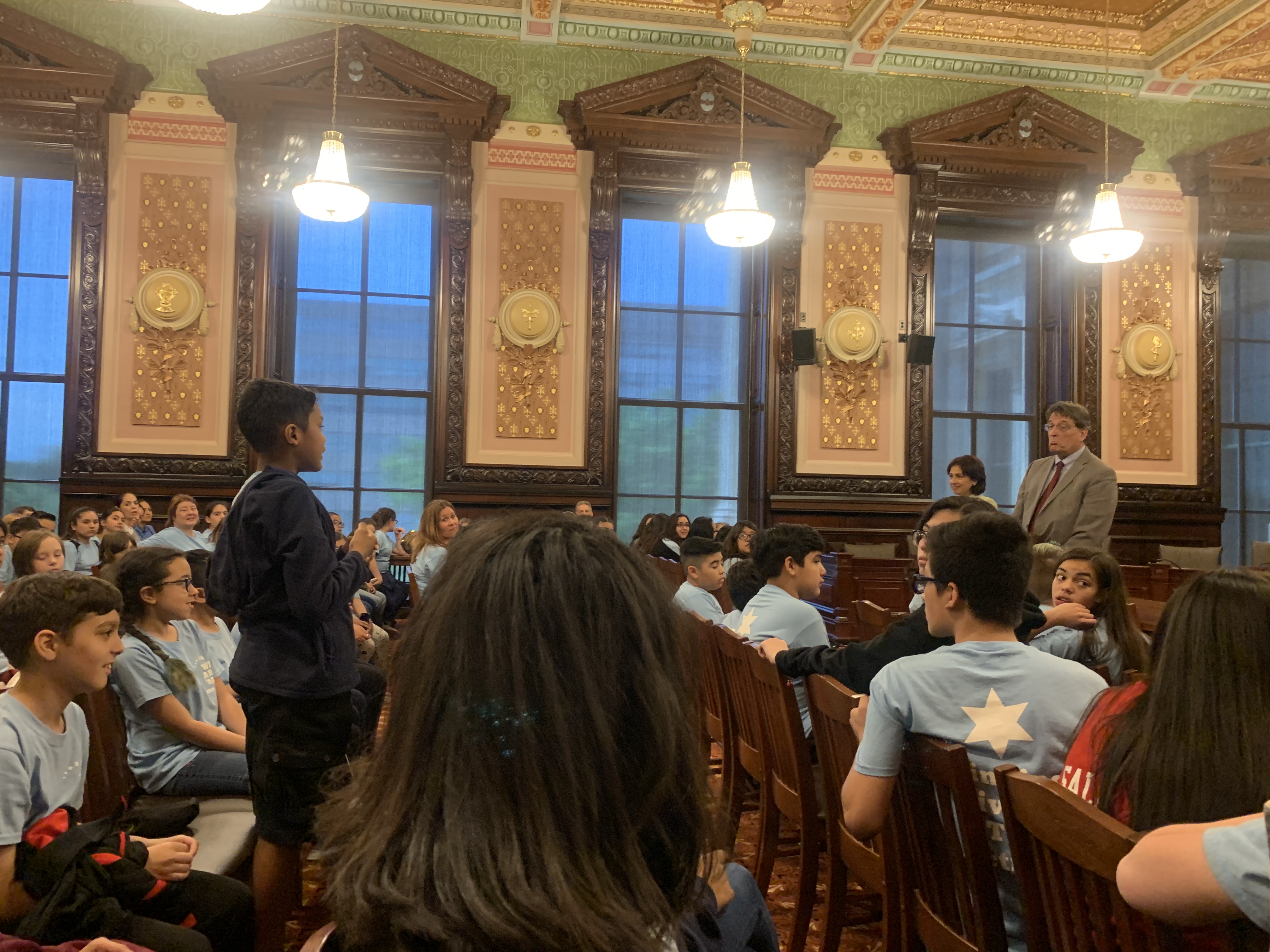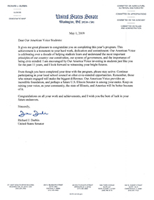 This year’s event once again set new records for participation. At both locations, students and teachers, who have been collaborating with other participating schools online throughout the school year, had the opportunity to share the fruits of their labors with one another. They also heard via video from Senator Dick Durbin, a long-time supporter of the program. In Chicago, former Senator and former Ambassador Carol Moseley-Braun was the keynote speaker (you can listen to an interview with Ambassador Moseley-Braun on WGN about the program and the importance of civics education here).